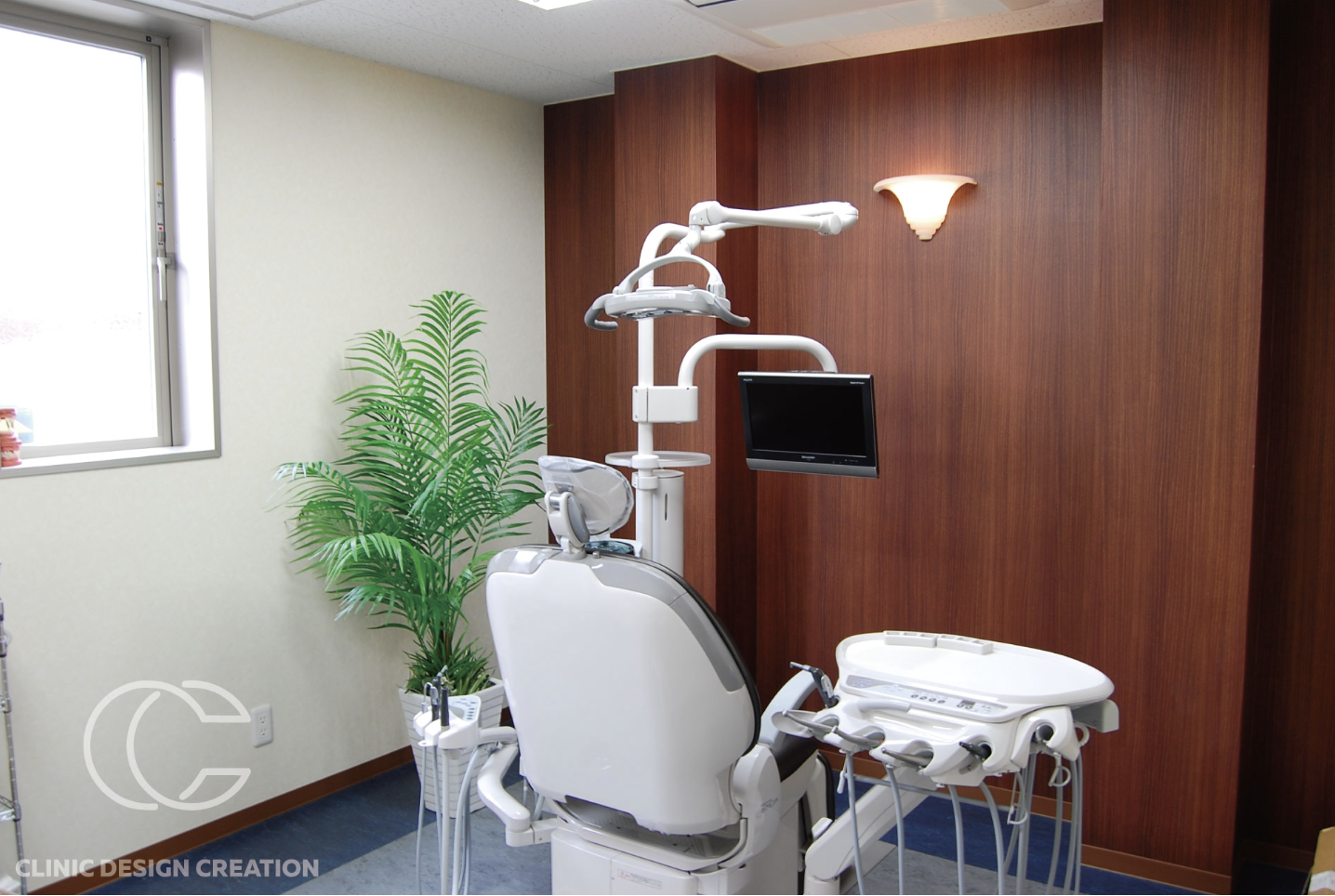 待合スペースは、まるでホテルのラウンジのような落ち着いた空間を意識し、圧迫感のないレイアウトと心地よい照明計画を採用。診療室はプライバシーを確保しつつ、開放感を感じられる設計で、歯科治療への不安を和らげるよう工夫しています。